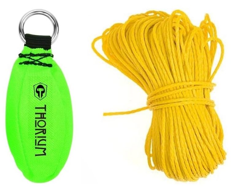 I used an arborist throw weight and line that I got from Amazon. Real handy for chucking lines up into trees. It’s a little bean-bag with a spool of easily unspooling nylon line. https://www.amazon.com/dp/B0CH16X8BF